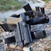 Holsters are compatible with slide mounted optics, suppressor height sights, barrel extensions and will work with most standard belt attachment on the market due to the modular design.