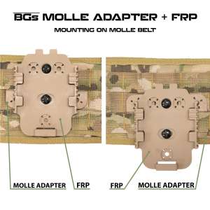 Designed for plate carriers and MOLLE-compatible belts, the MOLLE Adapter Kit provides a robust platform with quick-detach capability using the included FRP.
